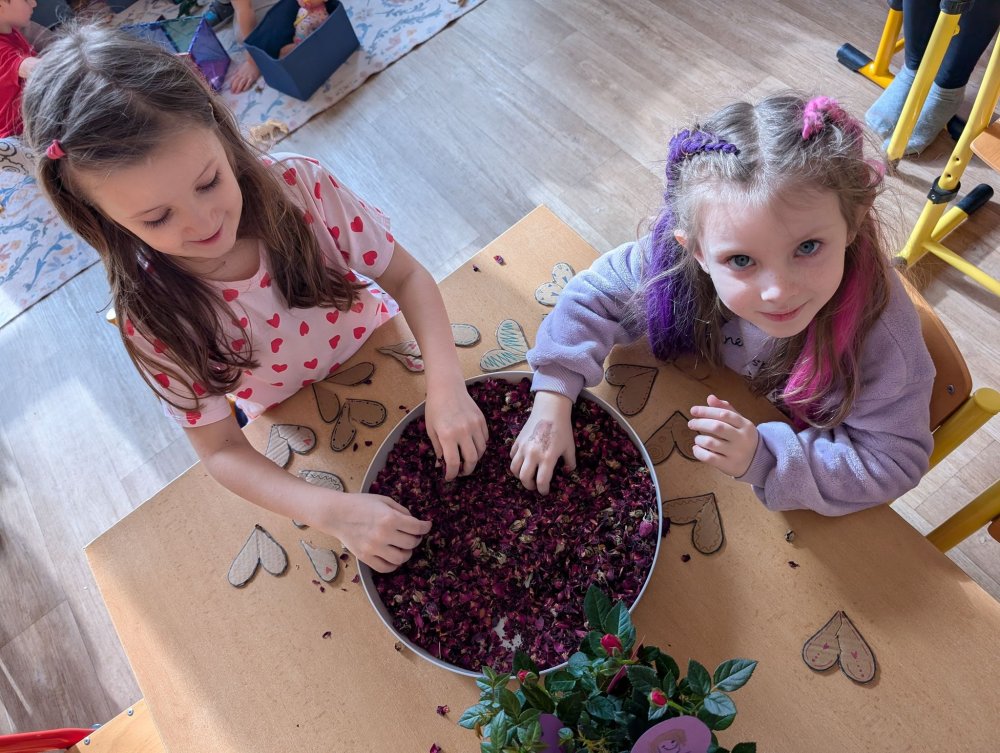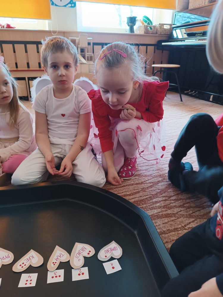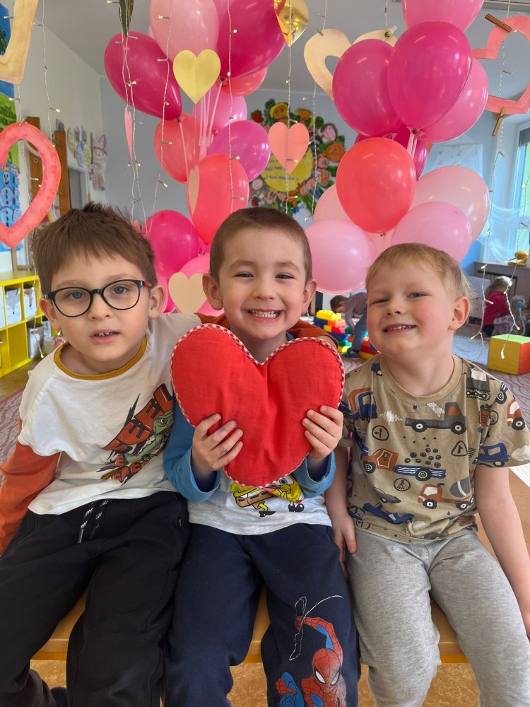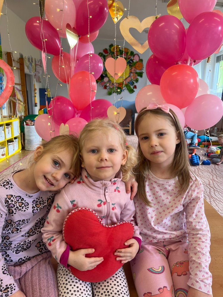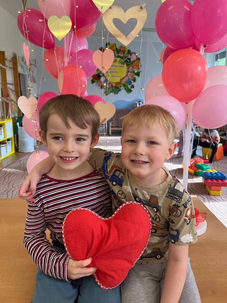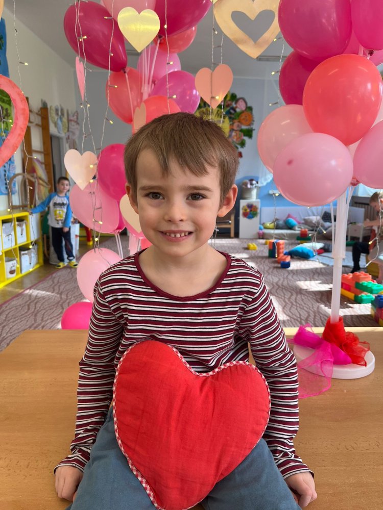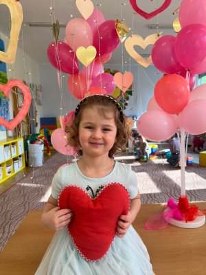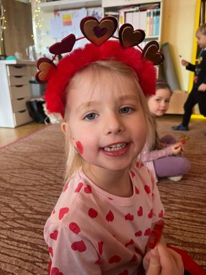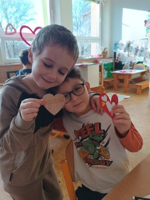 Využili jsme krásné únorové příležitosti popovídat si o lásce, protože se slavil den sv. Valentýna. A tak jsme si povídali o tom, co pro nás znamená láska nebo mít někoho rád. Děti vyjadřovaly své pocity slovy, objetím, kreslením, skládáním srdíček a vytvářením valentýnek. Pak jsme se jeden den oblékli do valentýnského hávu - růžové, srdíčkové oblečení, různé doplňky - čelenky, brýle, dokonce i Amorův luk se šípem a slavili jsme. Vyřešením valentýnské pátrací hry jsme byli odměněni pusinkovými lízátky, vytvořili si valentýnskou galerii z fotek a užili si opět jeden z krásných dnů ve školce.