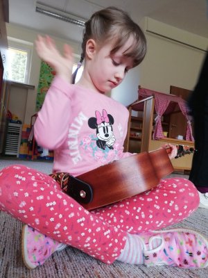 Vendy se učí hrát na ukulele