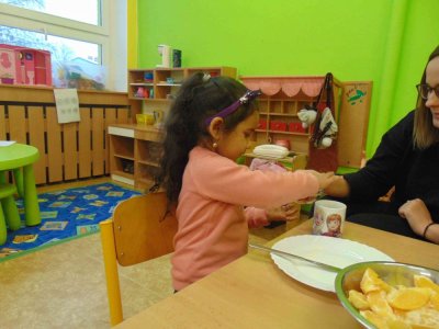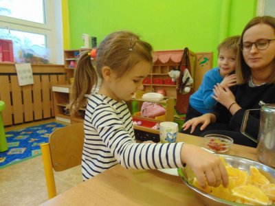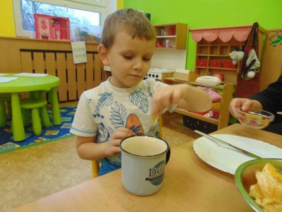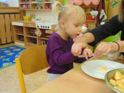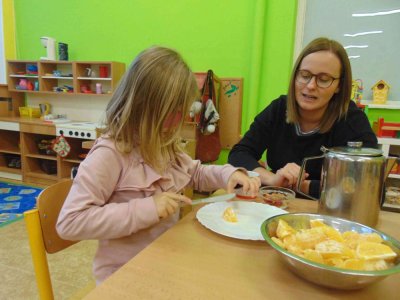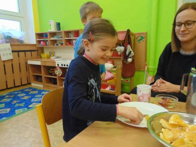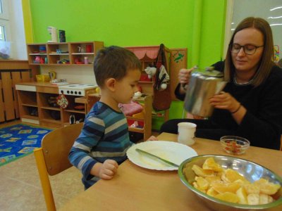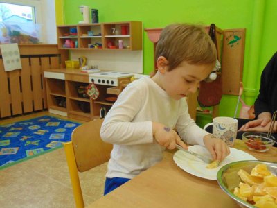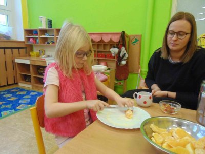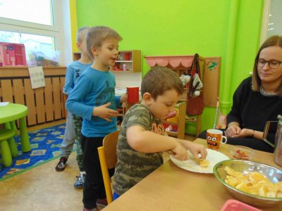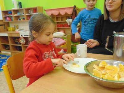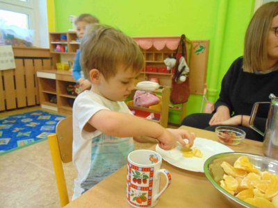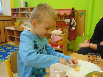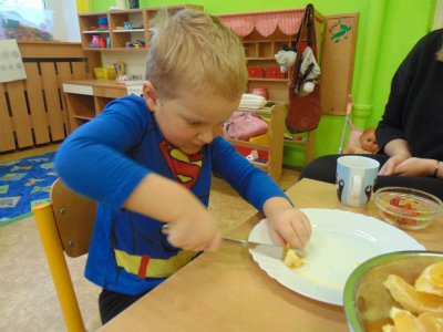 Jeden den jsme si obohatili podzimní výrobou nefalšovaného školkového punče :)….a krájelo se a krájelo. Bez práce přece nejsou koláče….