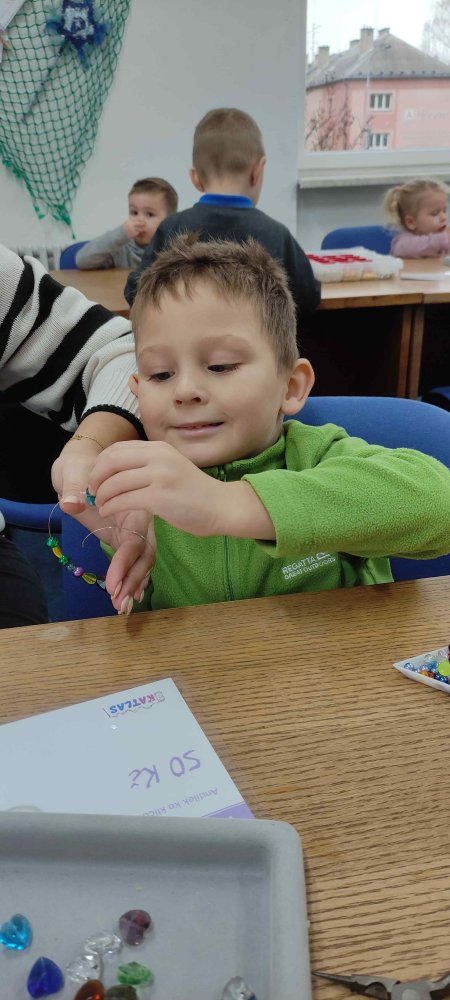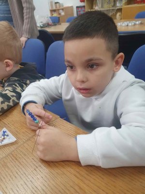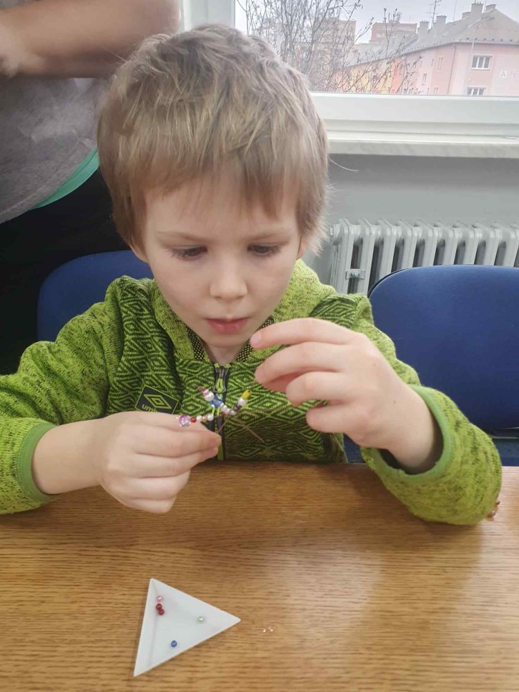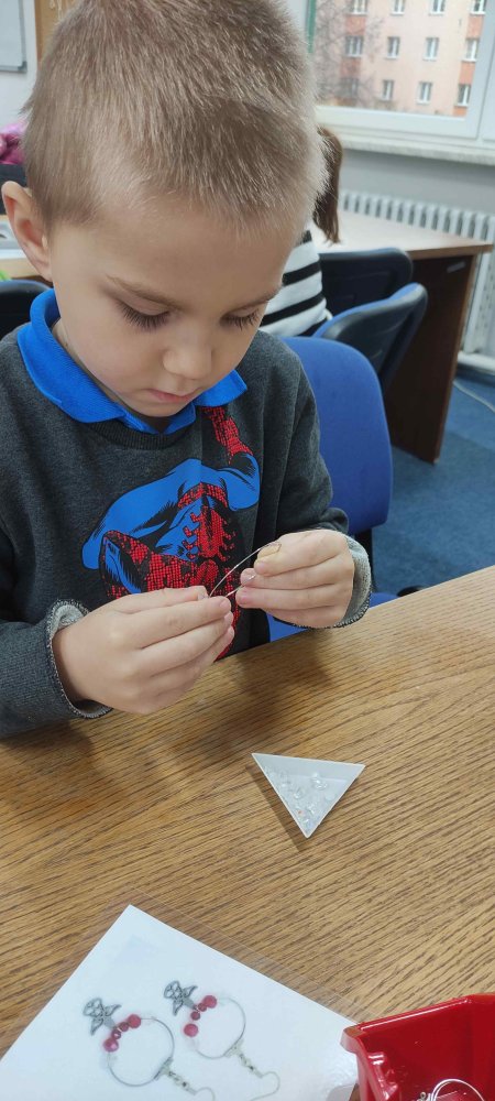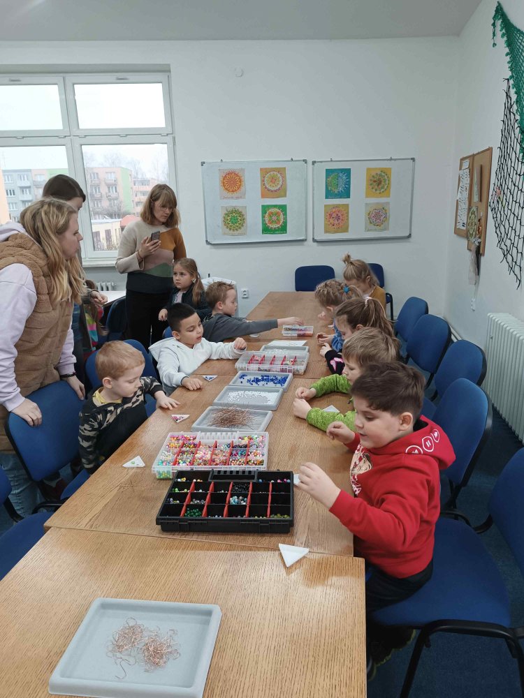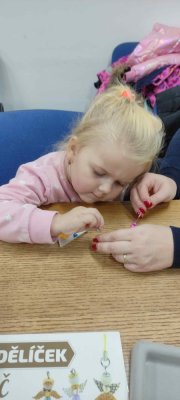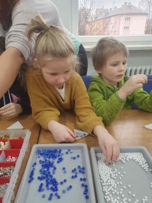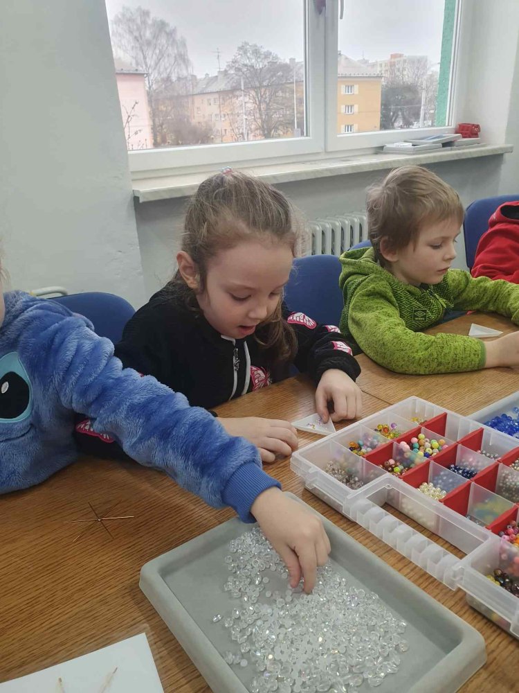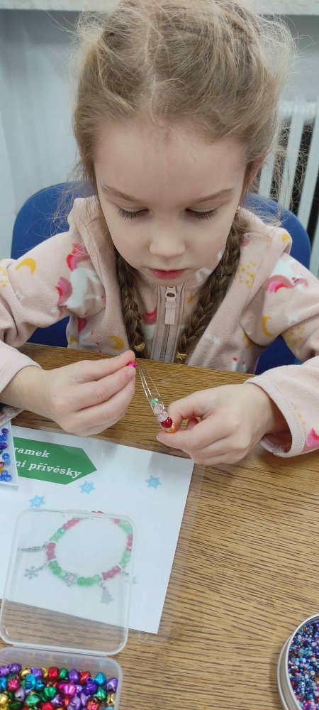 Ve dvou termínech jsme se s dětmi vydali do prodejny korálků Katlas na ulici Horní, kde měly děti možnost si v rámci dílniček vytvořit náramek a hvězdu jako ozdobu na vánoční stromeček. Menší děti si vytvořily náramky a starší děti vytvářely složitější hvězdu. Aktivita byla zajímavá a při jedné návštěvě nám společnost dělala také fenečka Felicie, a tak jsme to měli spojené i s určitou formou “canisterapie” - děti byly nadšené.
