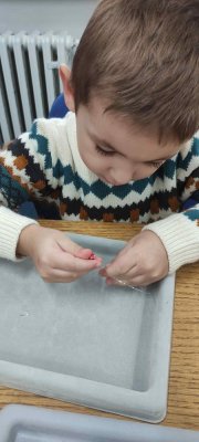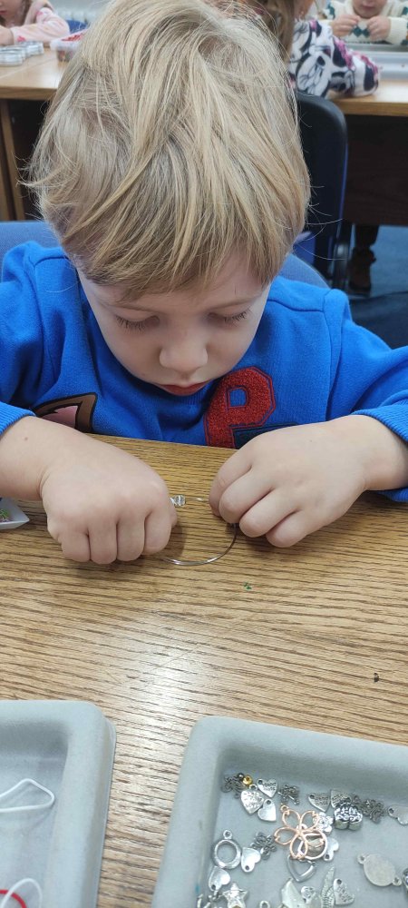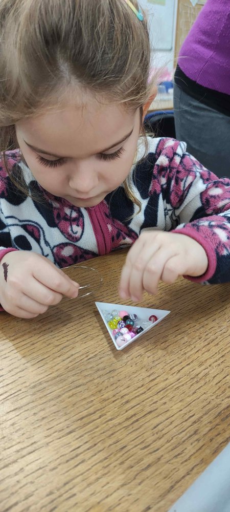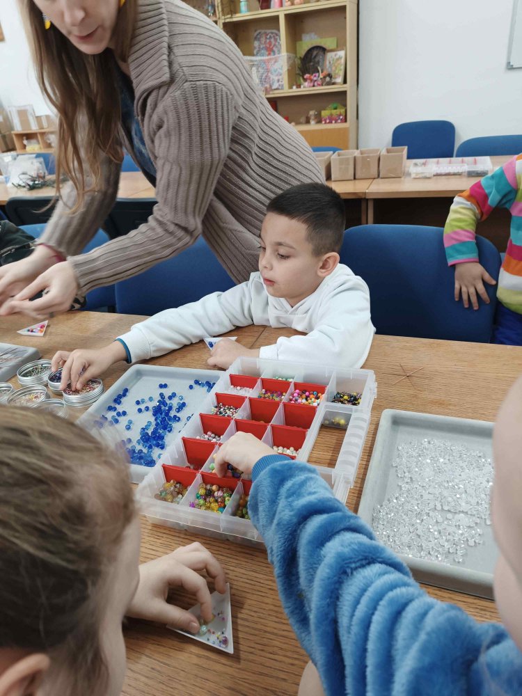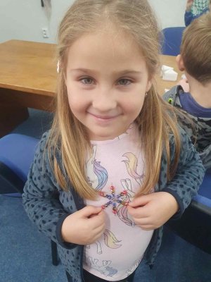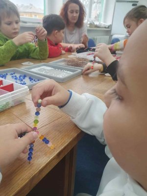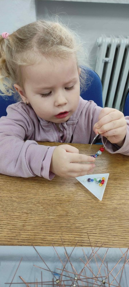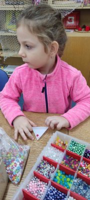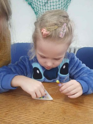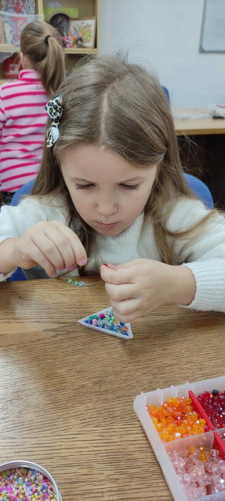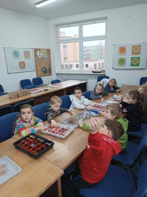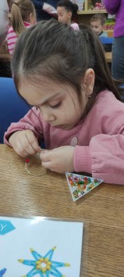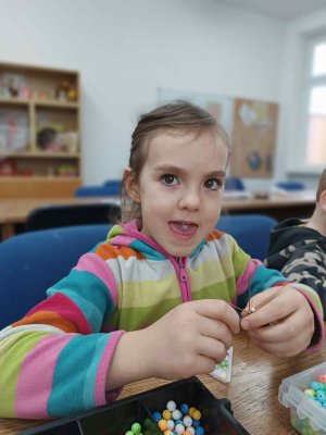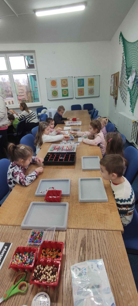 Ve dvou termínech jsme se s dětmi vydali do prodejny korálků Katlas na ulici Horní, kde měly děti možnost si v rámci dílniček vytvořit náramek a hvězdu jako ozdobu na vánoční stromeček. Menší děti si vytvořily náramky a starší děti vytvářely složitější hvězdu. Aktivita byla zajímavá a při jedné návštěvě nám společnost dělala také fenečka Felicie, a tak jsme to měli spojené i s určitou formou “canisterapie” - děti byly nadšené.