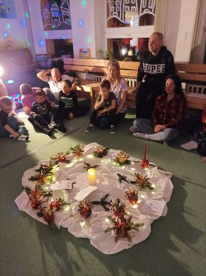 Vánoční atmosféra s rodiči a dětmi.