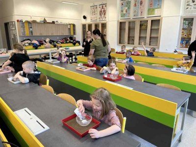 Několikrát do roka navštívíme s dětmi ZŠ Březinova, kde si pro nás vždy nachystají něco zábavného a zajímavého - během dvou návštěv si děti vyzkoušely jednoduché programování a prohloubily si své dovednosti v oblasti robotiky, a také si vyzkoušely různé experimenty ve školní laboratoři. Nutno podotknout, že děti se na návštěvy ZŠ Březinova moc těší a přicházejí vždy plné zážitků.