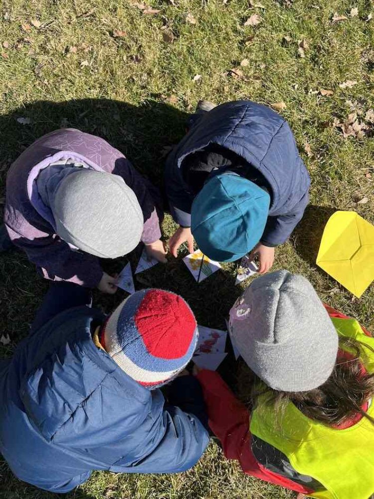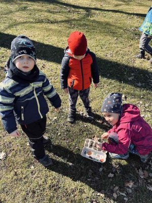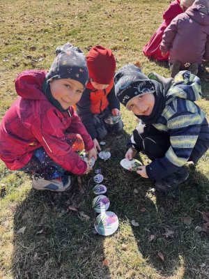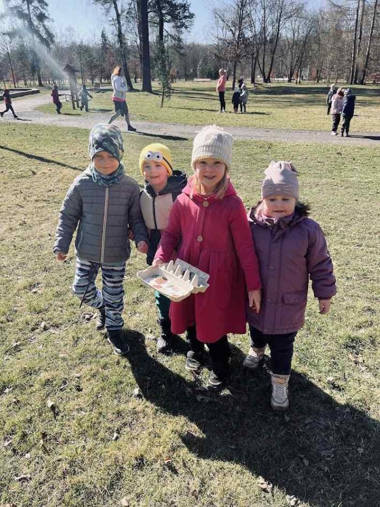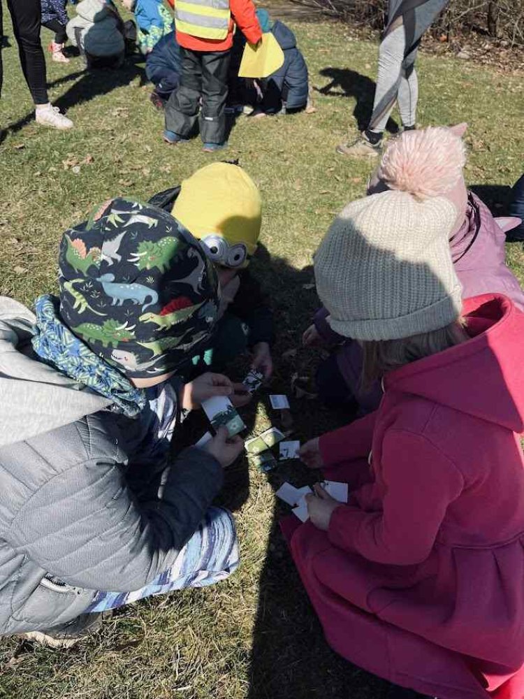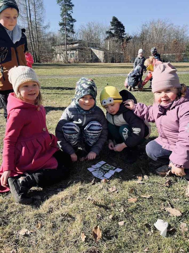Počasí nám přálo, a tak jsme se s dětmi vydali na procházku do Bělského lesa, abychom prozkoumali, jestli nám to jaro už opravdu zaťukalo na lesní dveře. Vyrazili jsme poměrně brzo ráno, a tak bylo dobře, že jsme byli v pohybu, protože bylo čerstvo. Po příchodu do lesa jsme si trochu zacvičili (proběhli se, pozdravili Sluníčko) a posilnili se dobrou svačinkou. Pak už nás čekaly nejrůznější aktivity spojené s přírodou. Aby nám šla práce pěkně od ruky, vytvořili jsme skupinky, ve kterých děti spolupracovaly. Skládaly se, třídily různé obrázky, a pak jsme v terénu hledali, co bylo zapotřebí - mech, sedmikrásku, šišku, hlínu atd. Odměnou byl určitě nejen prima pocit za zvládnutí úkolů, ale také aktivní a radostné využití herních prvků našimi dětmi na tamějším hřišti.