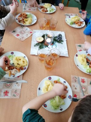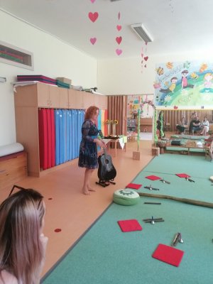 Třída Sluníčko denně vítá a zdraví sluníčko na obloze zpěvem a tancem. V energii živlů, rytmů a zvuků přirozeně laděných nástrojů, spontánních her, kreativních a tvořivých činností, jasně stanovených pravidel soužití a hlubokého prožívání přítomného okamžiku, se ve třídě všichni cítí pohodově a bezpečně. Obě učitelky jednotným přístupem a působením blahodárně přispívají k přirozenému rozvoji dětí a k otevřenému a přátelskému chování rodičů. Uznávají stejné lidské hodnoty, na děti i rodiče působí s moudrou laskavostí a důsledností a společně s dětmi a rodiči tvoří veselou sluníčkovou rodinu.